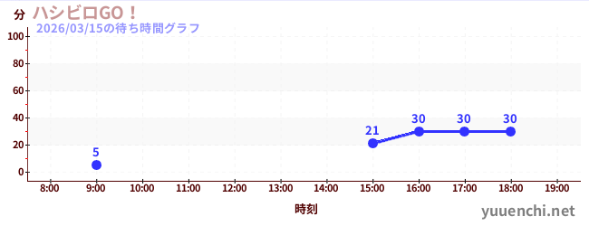 2026/03/15の待ち時間グラフ (ハシビロGO!)