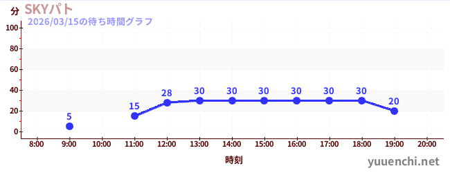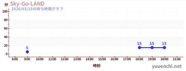 2026/03/15の待ち時間グラフ (Sky-Go-LAND)