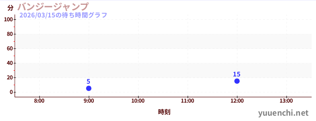 2026/03/15の待ち時間グラフ (バンジージャンプ)