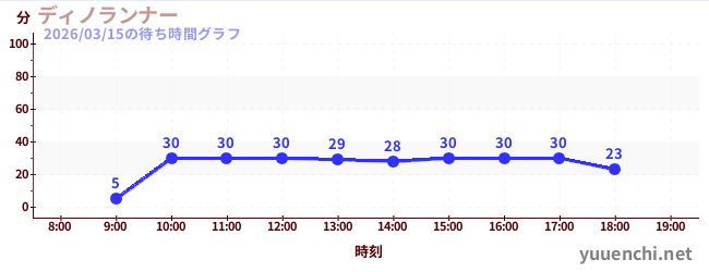 2026/03/15の待ち時間グラフ (ディノランナー)