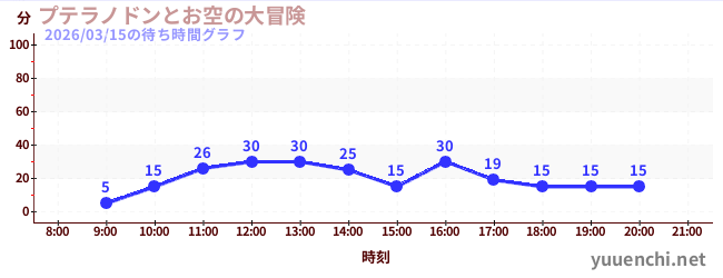 2026/03/15の待ち時間グラフ (プテラノドンとお空の大冒険)