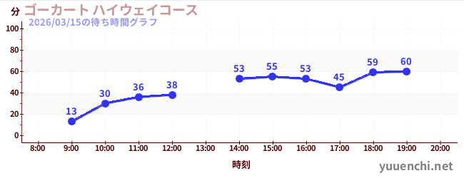 2026/03/15の待ち時間グラフ (ゴーカート ハイウェイコース)