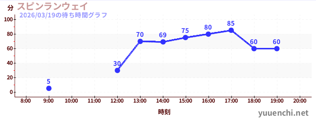 2026/03/19の待ち時間グラフ (スピンランウェイ)