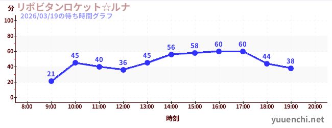 2026/03/19の待ち時間グラフ (リポビタンロケット☆ルナ)
