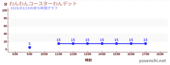 2026/03/19の待ち時間グラフ (わんわんコースターわんデット)
