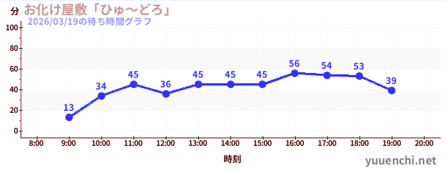 2026/03/19の待ち時間グラフ (お化け屋敷「ひゅ~どろ」)
