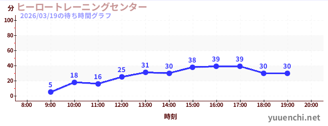 2026/03/19の待ち時間グラフ (ヒーロートレーニングセンター )