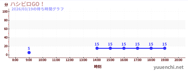2026/03/19の待ち時間グラフ (ハシビロGO!)