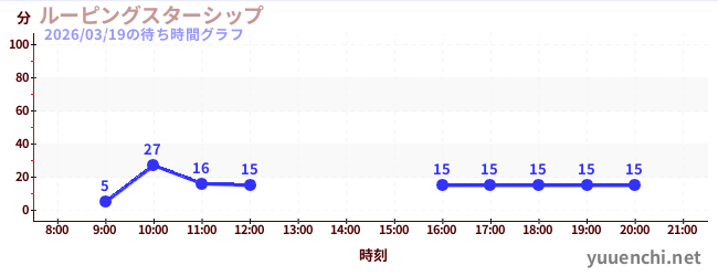 2026/03/19の待ち時間グラフ (ルーピングスターシップ)