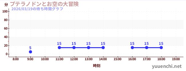 2026/03/19の待ち時間グラフ (プテラノドンとお空の大冒険)