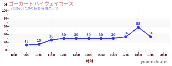 2026/03/19の待ち時間グラフ (ゴーカート ハイウェイコース)