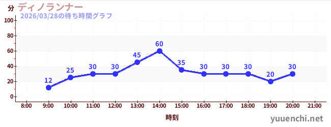 2026/03/28の待ち時間グラフ (ディノランナー)