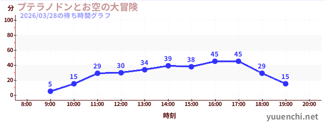 2026/03/28の待ち時間グラフ (プテラノドンとお空の大冒険)