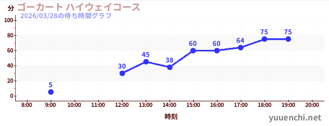2026/03/28の待ち時間グラフ (ゴーカート ハイウェイコース)