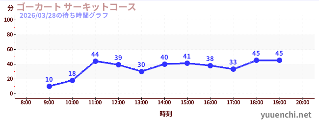 2026/03/28の待ち時間グラフ (ゴーカート サーキットコース)
