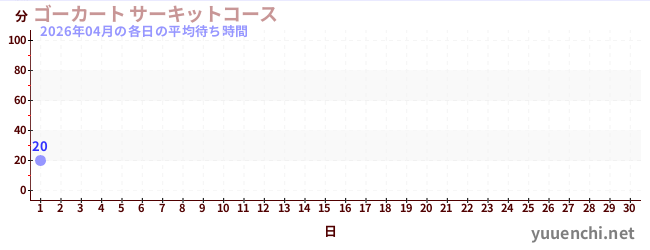 2026/04の一日平均待ち時間 (ゴーカート サーキットコース)
