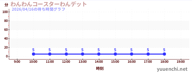 2026/04/16の待ち時間グラフ (わんわんコースターわんデット)