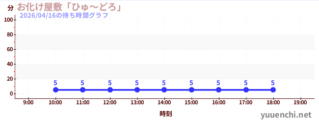 2026/04/16の待ち時間グラフ (お化け屋敷「ひゅ~どろ」)