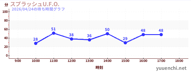 2026/04/24の待ち時間グラフ (スプラッシュU.F.O.)