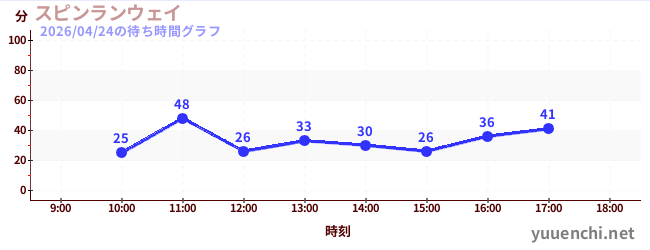 2026/04/24の待ち時間グラフ (スピンランウェイ)