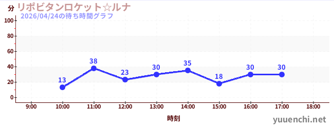 2026/04/24の待ち時間グラフ (リポビタンロケット☆ルナ)