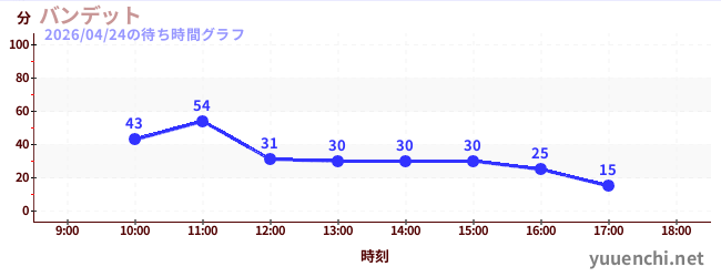 2026/04/24の待ち時間グラフ (バンジージャンプ)