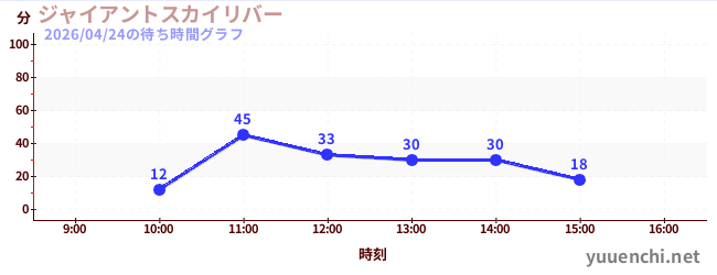 2026/04/24の待ち時間グラフ (ジャイアントスカイリバー)