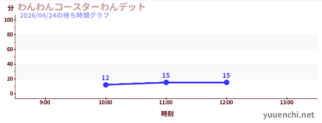 2026/04/24の待ち時間グラフ (わんわんコースターわんデット)
