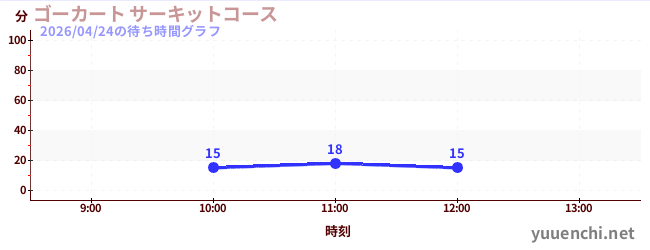 2026/04/24の待ち時間グラフ (ゴーカート サーキットコース)