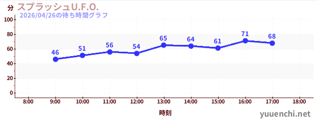 2026/04/26の待ち時間グラフ (スプラッシュU.F.O.)