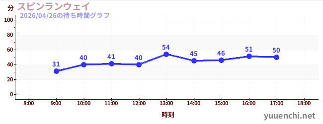2026/04/26の待ち時間グラフ (スピンランウェイ)