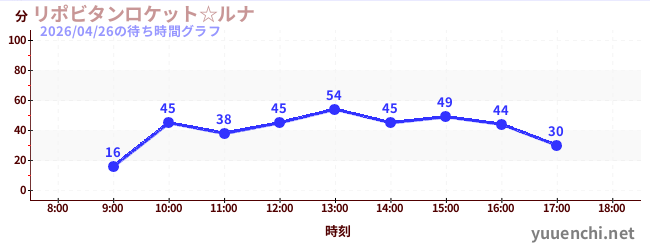2026/04/26の待ち時間グラフ (リポビタンロケット☆ルナ)