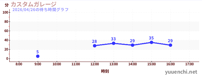2026/04/26の待ち時間グラフ (カスタムガレージ)
