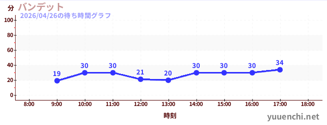 2026/04/26の待ち時間グラフ (バンジージャンプ)