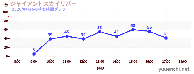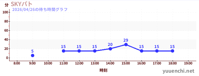 2026/04/26の待ち時間グラフ (Sky-Go-LAND)