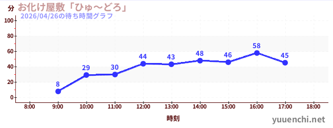 2026/04/26の待ち時間グラフ (お化け屋敷「ひゅ~どろ」)