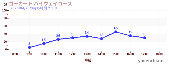 2026/04/26の待ち時間グラフ (ゴーカート ハイウェイコース)