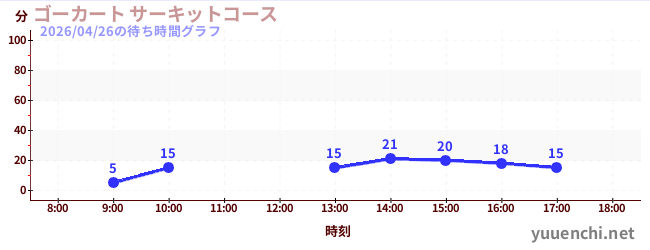2026/04/26の待ち時間グラフ (ゴーカート ファミリーコース)