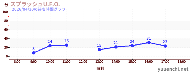 2026/04/30の待ち時間グラフ (スプラッシュU.F.O.)