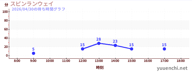 2026/04/30の待ち時間グラフ (スピンランウェイ)