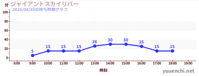 2026/04/30の待ち時間グラフ (ジャイアントスカイリバー)