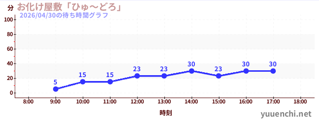 2026/04/30の待ち時間グラフ (お化け屋敷「ひゅ~どろ」)