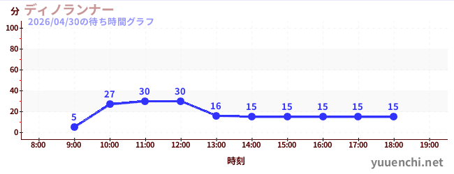 2026/04/30の待ち時間グラフ (ディノランナー)