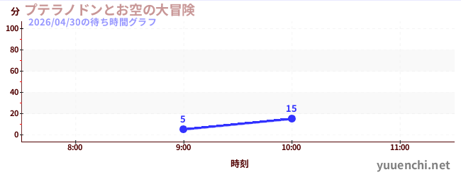 2026/04/30の待ち時間グラフ (プテラノドンとお空の大冒険)