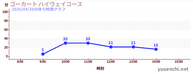 2026/04/30の待ち時間グラフ (ゴーカート ハイウェイコース)