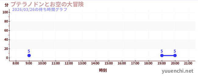 2026/03/26の待ち時間グラフ (プテラノドンとお空の大冒険)
