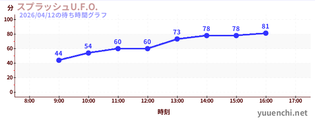 2026/04/12の待ち時間グラフ (スプラッシュU.F.O.)