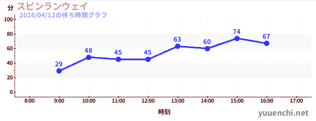 2026/04/12の待ち時間グラフ (スピンランウェイ)