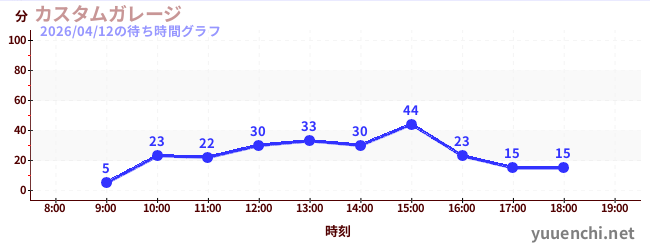 2026/04/12の待ち時間グラフ (カスタムガレージ)