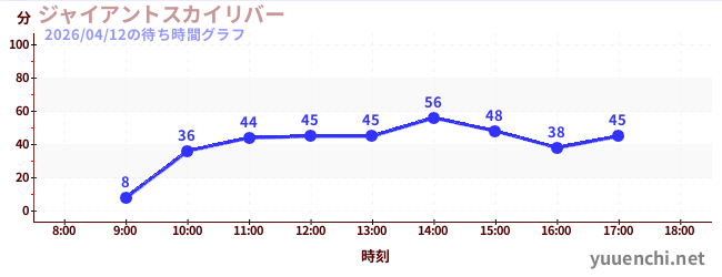 2026/04/12の待ち時間グラフ (ジャイアントスカイリバー)